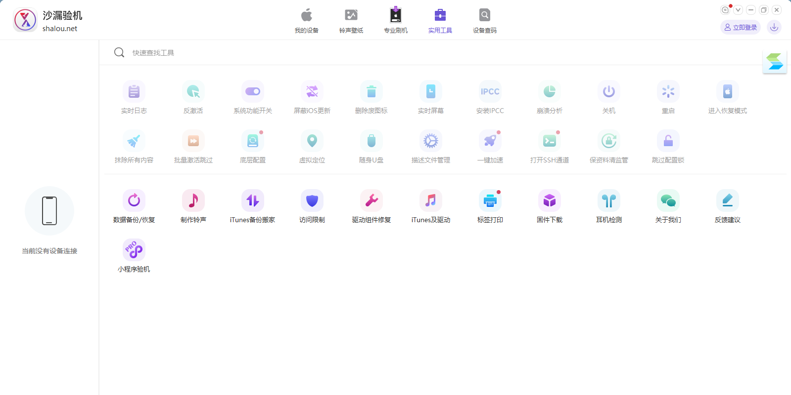 沙漏验机(鲨漏验机)是一款专业的苹果验机助手、苹果刷机助手,同时配有鲨漏验机PC端、鲨漏验机mac版;专为苹果用户提供专业精准的验机服务,以及功能全面的设备管理,验机我们是专业的!