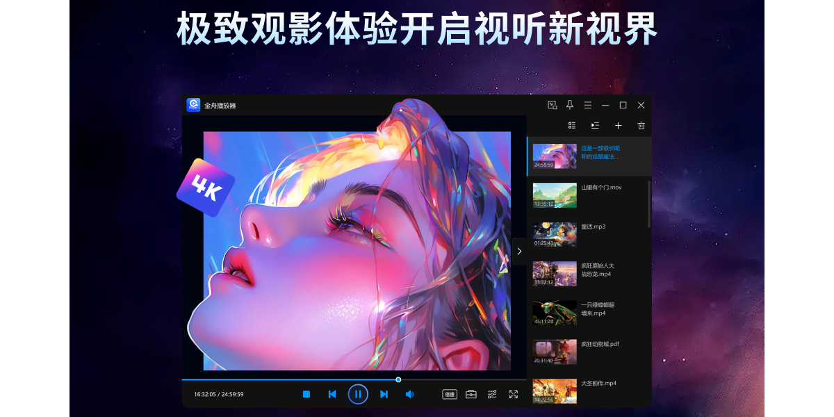 金舟视频播放器是一款专为影音爱好者打造的全能型视频播放软件;支持解码超过100+视频与音频文件格式随心观看,同时支持超清4K、蓝光HDR等视频播放;支持个性化自定义的观看体验设置,…