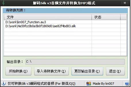 Silk2MP3是一款可以将微信语音、QQ语音转换为MP3播放的一款简易软件。Silk2MP3可以将Silk v3编码的语音文件,例如QQ和微信的语音文件进行转换,并输出为MP3格…
